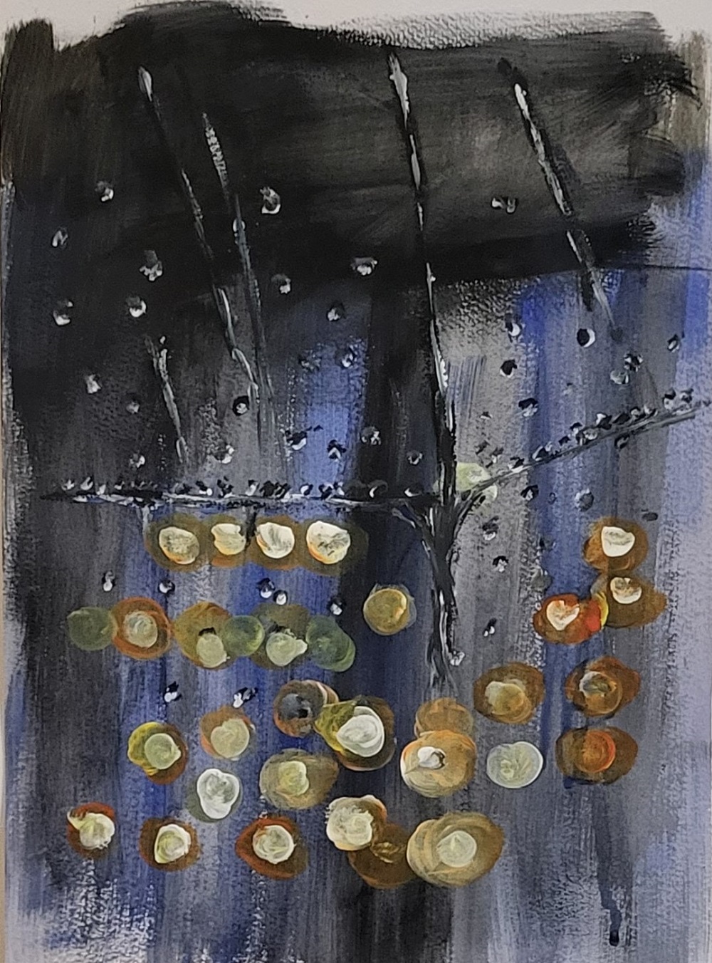 umbrellas golden rain - 50x40 acrylic laminated canvas - SOLD / PRODANA