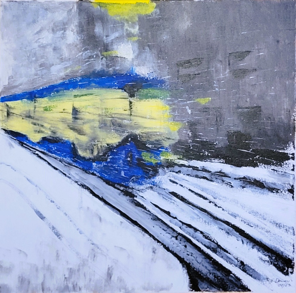 tram in the snow - 50x50 acrylic canvas - SOLD / PRODANA