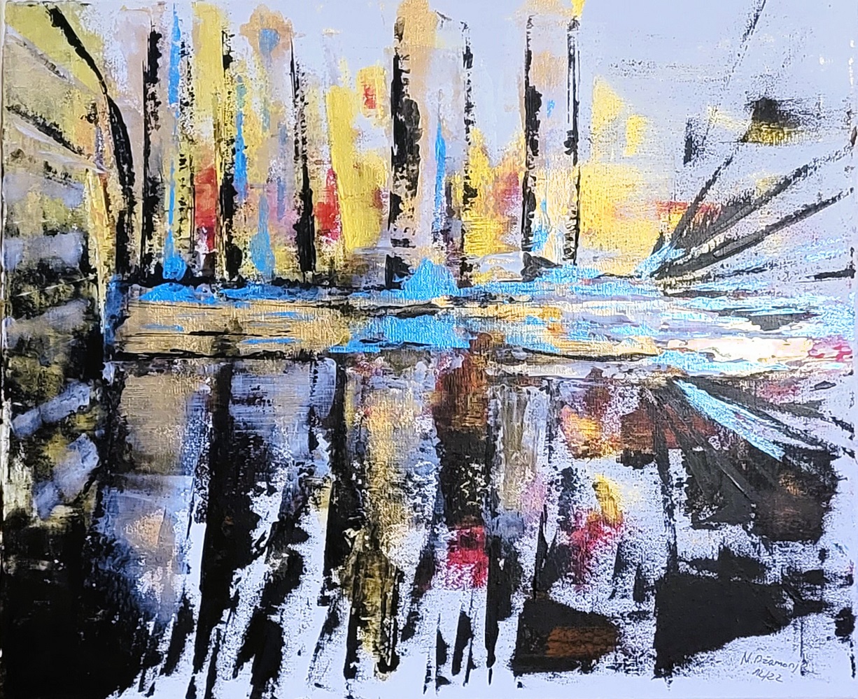 morning calm at the docks - 20x50 acrylic canvas - SOLD / PRODANA