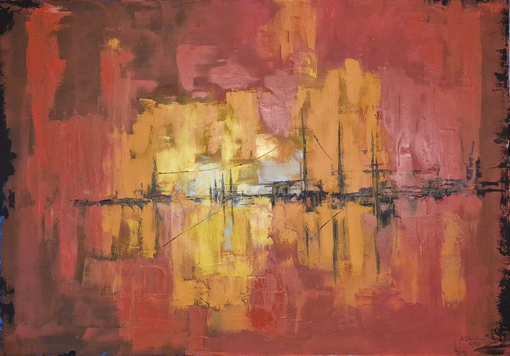 art by n – red harbor – 100×70 oil on canvas
