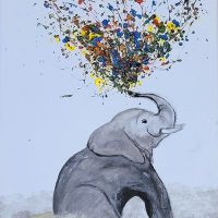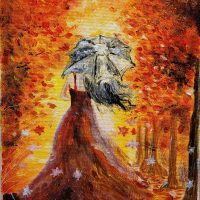 umbrellas golden rain - 50x40 acrylic laminated canvas - SOLD / PRODANA