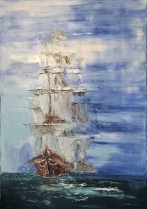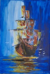 In this exhibition, Nenad Džamonja transforms the sea and ships into more than just motifs – they become drivers of movement, light, and abstract forms. Through layered textures, reflections, and bold compositions, the artist explores motion – both physical, through sailing, and internal, through emotions and visions. Sailing ships vanishing into the mist, geometric structures reminiscent of vessels – each painting tells a story of a journey into the unknown. Nenad’s art oscillates between abstraction and figuration, inviting the viewer to find their own direction in this visual expanse. This exhibition invites you to embark on an artistic journey where the boundaries between the real and the abstract dissolve – because art, like sailing, never stands still.