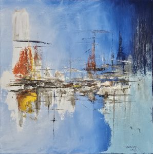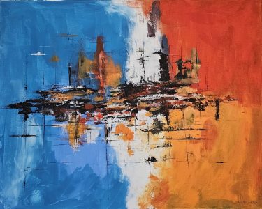 Welcome to the world of Nenad Džamonja, where every brush stroke and spatula hit on the canvas opens doors to new adventures in color and form. At the exhibition ‘Journeys in Color: Navigating the Abstract,’ we presented a series of works that explore the boundaries of abstract art, displaying the vibrations of city outlines and sea horizons through an innovative visual language. This collection, rich in dynamics and textures, invited visitors to lose themselves in layers of colors and shapes, finding personal paths through the emotional and aesthetic labyrinths of each painting. Each piece reflects a part of Nenad’s journeys and his continuous desire to explore new territories in art.